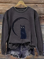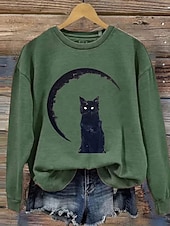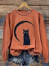 More information about Halloween Women's Sweatshirts Black Cat Graphic Cat Casual Long Sleeve Crew Neck Regular Tops Street Dailywear Casual Print Orange Green Gray Fall Winter