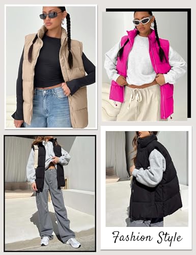 WHN Women's Oversized Puffer Vest Sleeveless Padded Jacket Coat Zip Up Winter Warm Outerwear 4