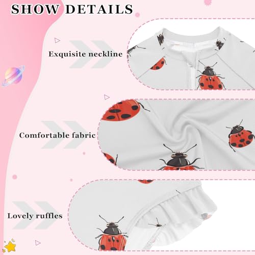 Girls Swimsuit Ladybugs Scarab Long Sleeve One Piece Bathing Suit for Kids UPF 50+ Rash Guard Swimwear 3-12 5