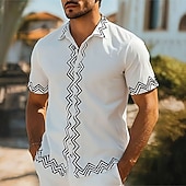 More information about Men's Geometric Line Shirt Casual Shirt Button Up Shirt Short Sleeve Fashion Casual Outdoor Vacation Streetwear Summer Spring Turndown 3D Print Collared Shirts White