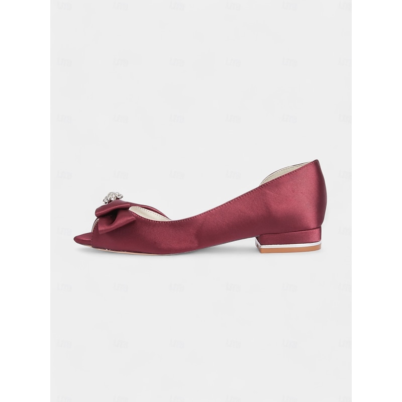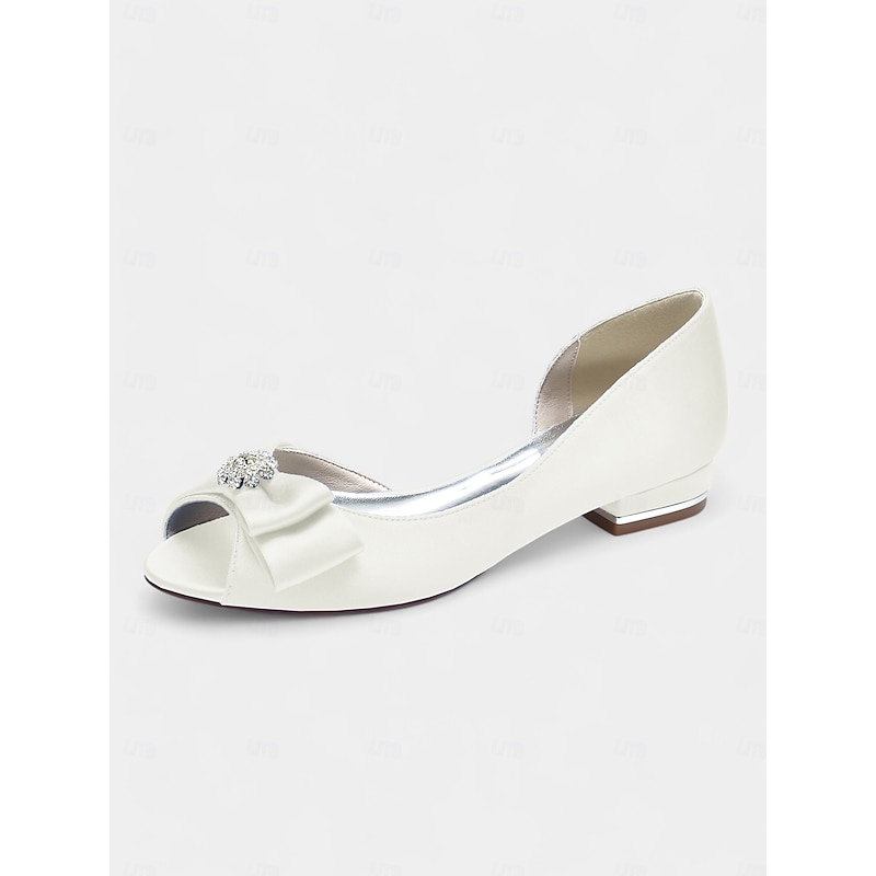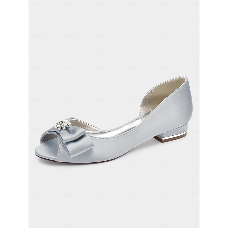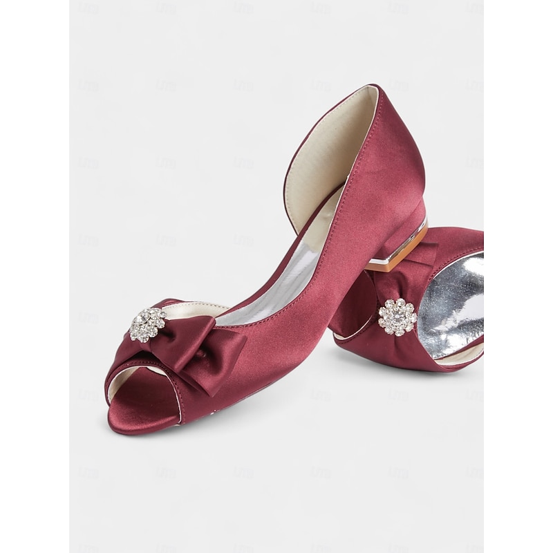 Elegant flats crafted in luxurious satin with a sparkling rhinestone bow, perfect for bridesmaids, wedding guests, or formal evening events. 1