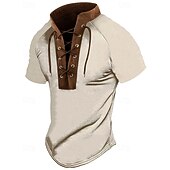 More information about Men's T Shirt Tee Short Sleeve Shirt Tee Top Short Sleeve Stand Collar Summer Color Block Fashion Designer Basic Lace up Vacation Street Going out Black Apricot Top Tee for Men