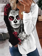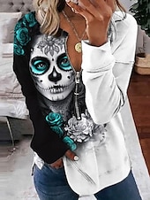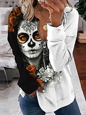 More information about Halloween Women's Pullover Sweatshirt Zip Up Sweatshirts Skulls Graphic Fashion Casual Long Sleeve Crew Neck Regular Tops Street Dailywear Zipper Print Red Orange Green Spring Fall Winter