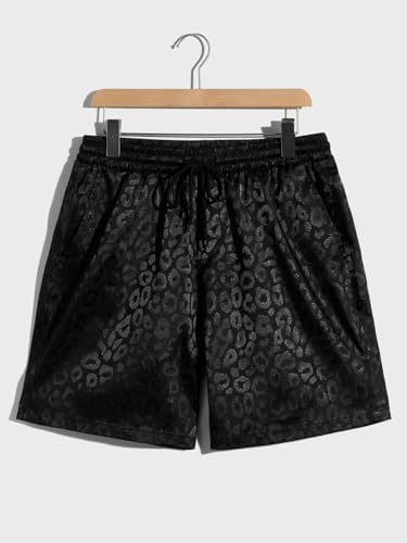 HOT ! Verdusa Men's 2 Piece Lounge Set PJ Set Leopard Jacquard Button Front Shirt and Short Sets Black
