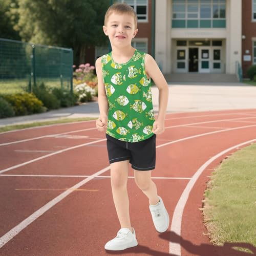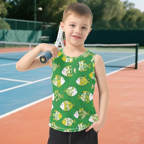 J JOYSAY Abstract Fish Green Boys Tank Top Sleeveless Muscle Shirts expedient Dry Workout Sport Active Kids T-Shirts 3-15T