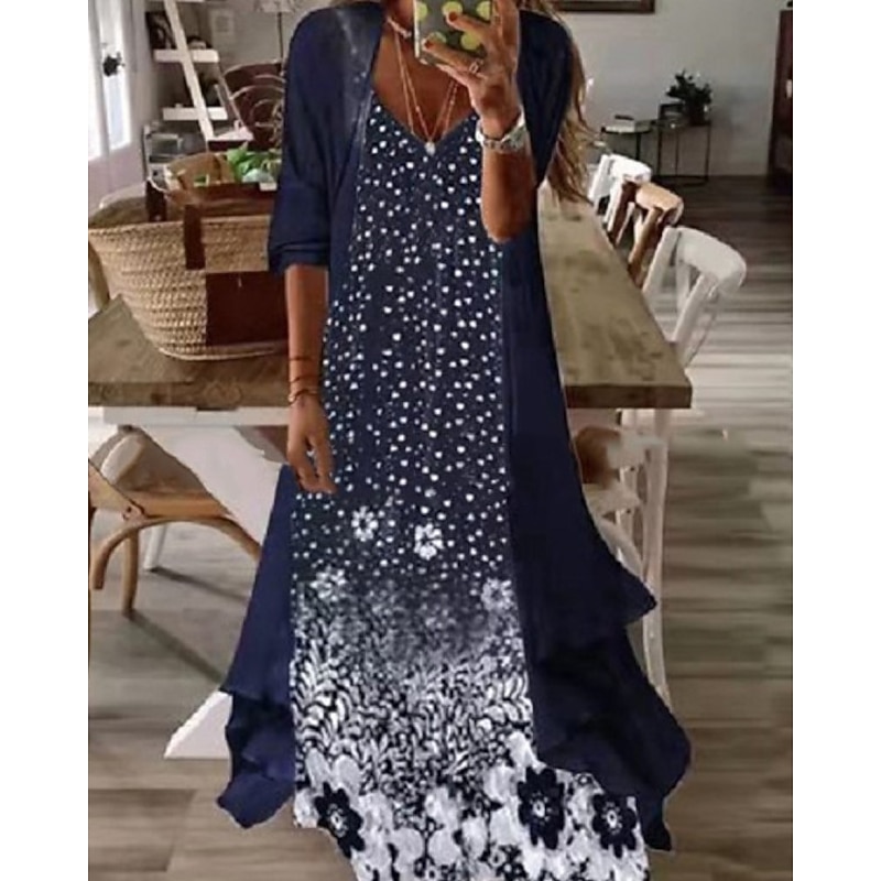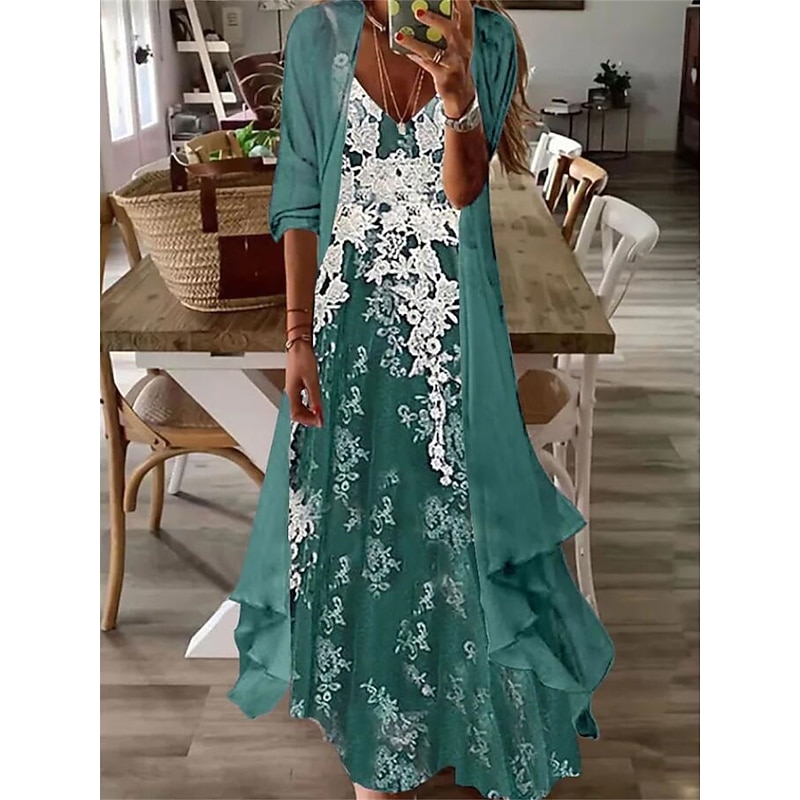 More information about Women's Casual Dress Dress Set Two Piece Dress Long Dress Maxi Dress Purple Brown Green Half Sleeve Flower Print Summer Spring V Neck Fashion Vacation 2023 S M L XL XXL 3XL