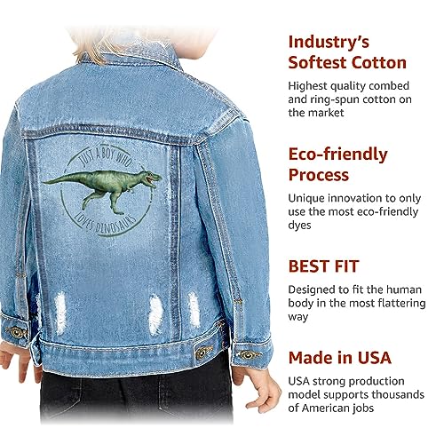 • Loves Dinosaurs Toddler Denim Jacket is made of premium quality denim that flexes and moves with you, made with our famous riveted strength. Super stretch denim lasts from day to night and its snug fit doesn't lose its shape. Toddler Denim Jacket has basic style but trendy and fashionable, lightweight material offers a relaxing feeling.