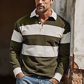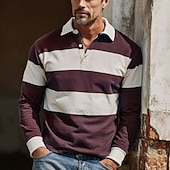 More information about Men's Horizontal Stripes Rugby Polo Long Sleeve Polo Shirts Collared Shirts Sportswear Casual School Outdoor Athleisure 3D Print Spring Fall Winter Maroon Blue Green