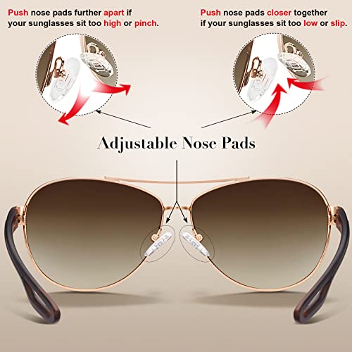 • Full-Covered Protection & Adjustable Nose Pads - Our big women's sunglasses offer more coverage against UV rays/glares/wind/dust with 60mm large curved lens. Decompression nose pads can be freely adjusted to befitting bridge width. Avoid oppressing bridge and fit comfortably on all cheeks.