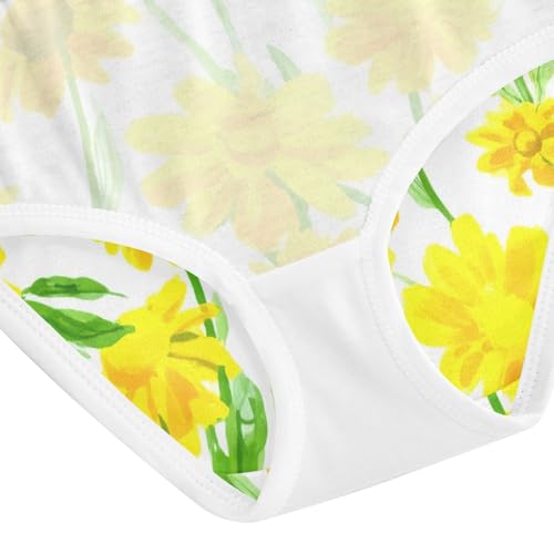 Cotton Girls Underwear Toddlers Yellow Daisies Green Leaves Little Girl Panties Artistic Briefs Undies Kids 2t 1