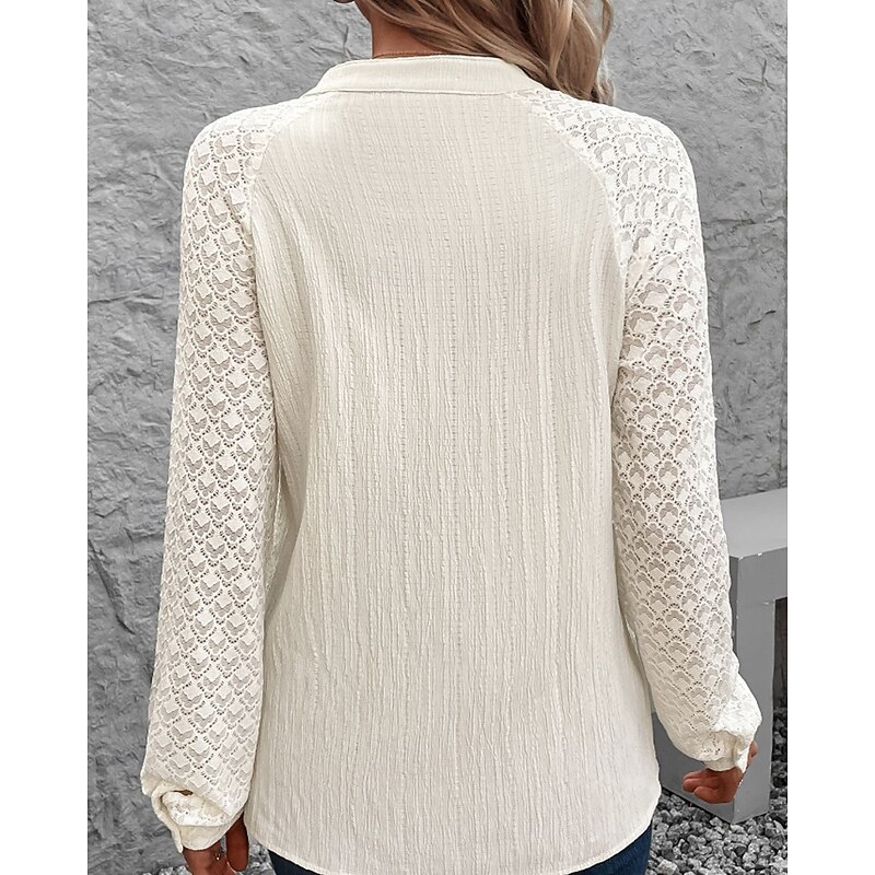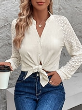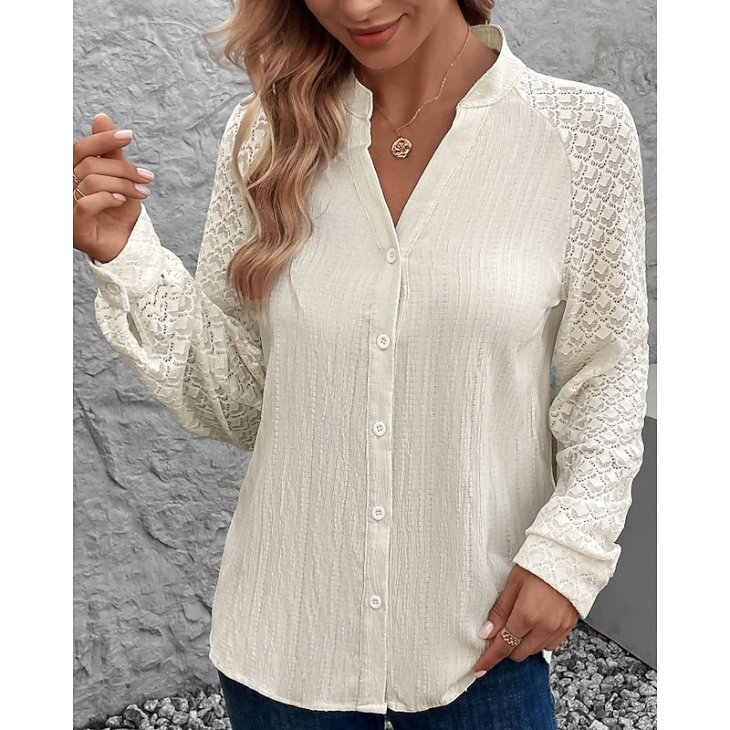 More information about Women's Shirt Lace Shirt Blouse Plain Modern Long Sleeve V Neck Regular Tops Daily Holiday Going out Lace Patchwork Apricot Fall