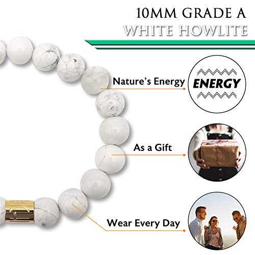 • Material : We only use gemstone beads of grade A or above, this bracelet made of natural white howlite gemstone beads, it's elastic bracelet, real gold plated high quality stainless steel column accessories mark "Morchic", hypoallergenic and corrosion resistant, strong TPU cord to protect bracelet not easy to break.