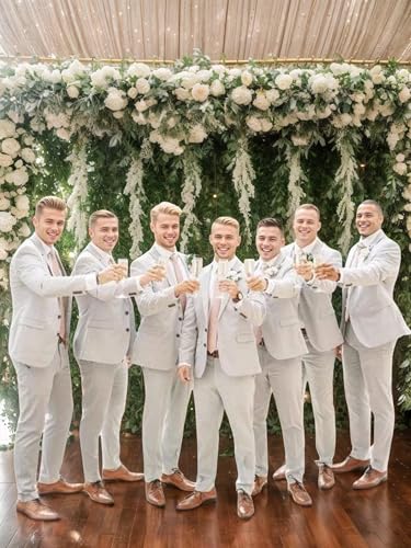 Mens Suit 2 Piece Linen Suit for Men Lightweight Summer Wedding Groomsmen Prom Casual Mens Blazer Pants 6