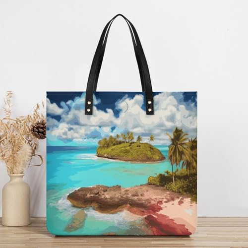 • 【Sweet Surprise】Whether it's for working, shopping trips or festive parties, this Caribbean Scenery leather tote bag is a great choice. It serves as a wonderful surprise for women, combining practicality, style, and versatility.