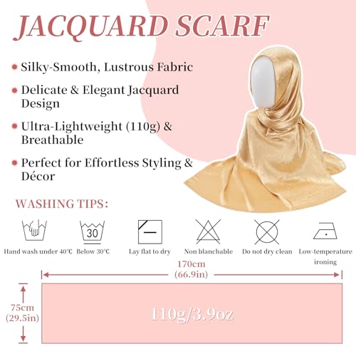 • Premium Material: Crafted from a high-quality blend of faux cashmere and soft viscose, this Champagne Gold pashmina wrap feels incredibly smooth and comfortable against your skin, providing the perfect amount of warmth for cooler evenings.