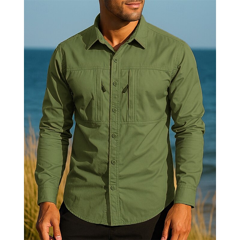 More information about Men's Hiking Shirt Waterproof Shirt Long Sleeve Turndown Shirt Top Outdoor Lightweight Breathable Cotton Black Army Green Khaki Hunting Fishing Camping / Hiking / Caving