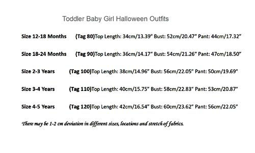 • [Occasion] : Little girl's toddler halloween pants clothes sets are perfect for Halloween themed party,Dress up party,Mask party,Trick-or-Treat party,Carnival,daily life,outdoor,play, photographing ,etc.
