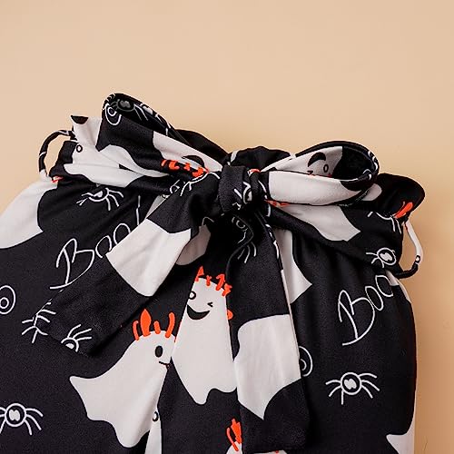 Noubeau Toddler Baby Girl Halloween Outfits Long Sleeve Ruffle Boho Shirt Dress Ghost Pumpkin Pants Sets 3Pcs Fall Outfits 6