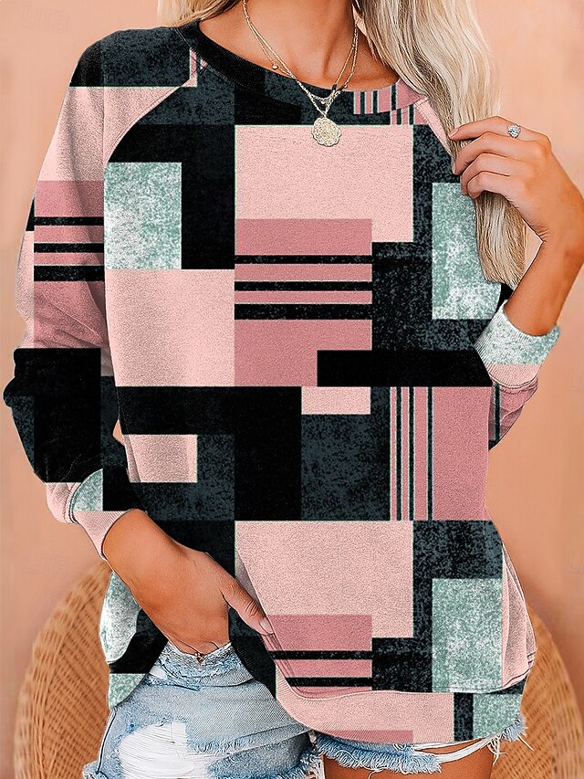 More information about Women's Sweatshirts Graphic Geometric Fashion Casual Long Sleeve Crew Neck Regular Tops Casual Print Pink Blue Purple Green Summer Spring Fall