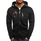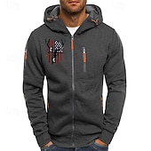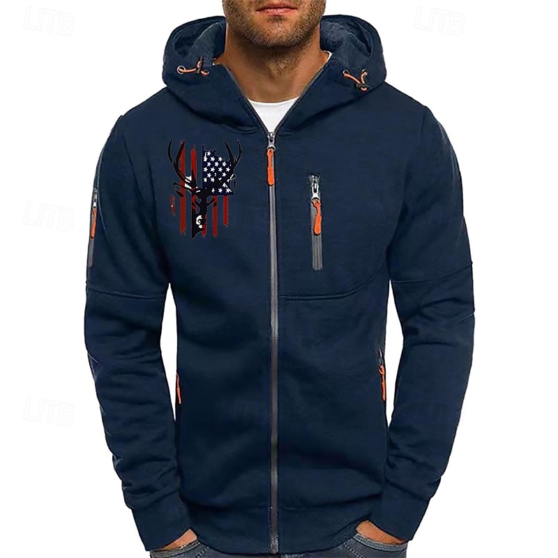 More information about Men's Hoodie Full Zip Hoodie Black White Navy Blue Light Grey Dark Gray Hooded Elk National Flag Pocket Print Sports & Outdoor Daily Holiday Polyester Streetwear Basic Casual Spring Fall Clothing