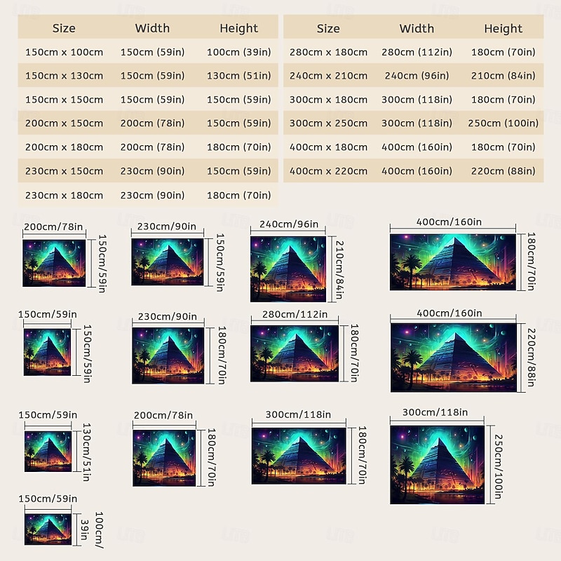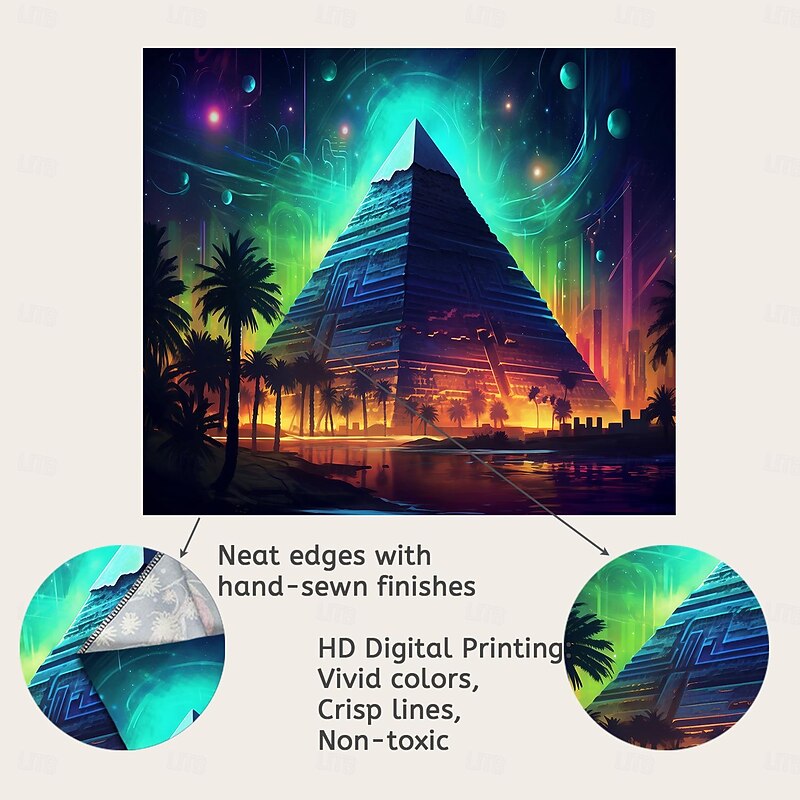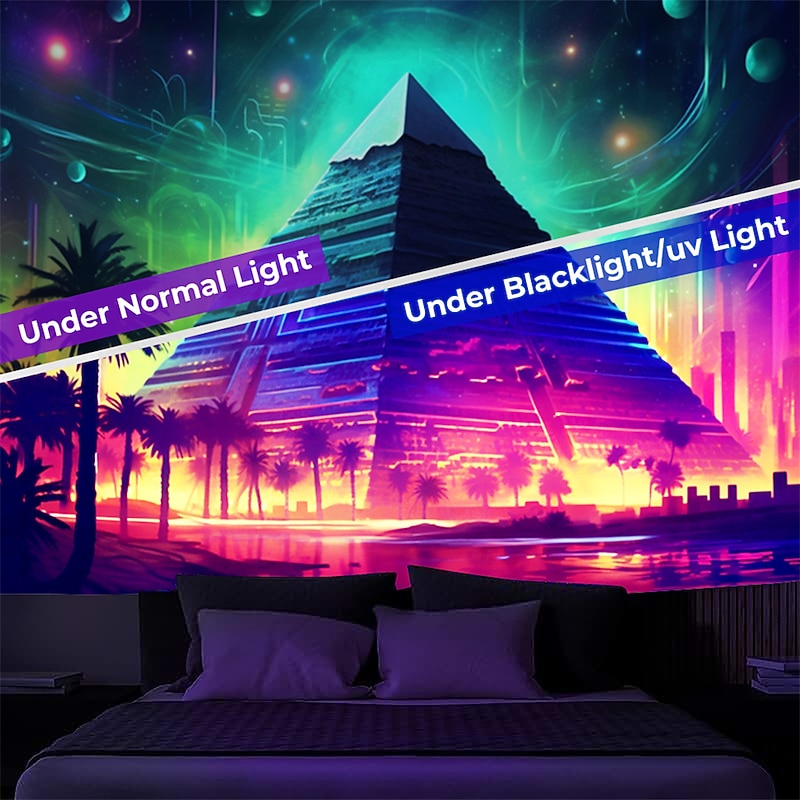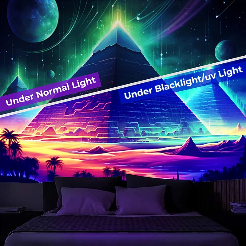 HOT ! Blacklight Tapestry UV Reactive Glow in the Dark Glow Party Neon Egyptian Pyramid Psychedelic Trippy Misty Hanging Tapestry Wall Art Mural for Living Room Bedroom