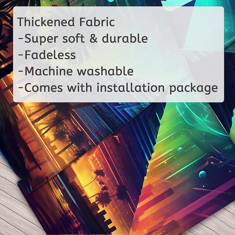 Highlights 【Durable Construction】 Crafted with high-quality polyester fabric, this tapestry is built to last. Its robust composition ensures that you can enjoy its beauty for years to come. 【Soft and Lightweight】 This tapestry is soft to the touch and lightweight, making it perfect for both indoor and outdoor use. 【Multiple Size Options】 Available in different sizes to accommodate any room's dimensions. 【Intricate Design】 The tapestry features a captivating design inspired by life itself. Its vivid imagery, crisp lines, and vibrant colors will become a conversation piece in any room. 【Versatility at Its Best】 Not just for wall decor, this tapestry can also double as a tablecloth or a picnic blanket, adding functional versatility to its artistic charm. 【Note】 1. Please allow 1-2cm (0.4"-0.8") deviations due to manual measurement. 2. Please understand the tiny color vary from the product due to different light and screen display. 3. UV/Black Light Reactive: This glow in the dark tapestry glows under blacklight / UV light. In normal light, the colors also are full and vivid.