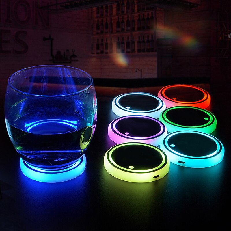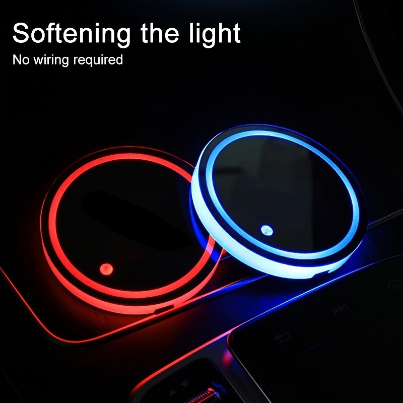 HOT ! Smart Luminous Water Coaster LED Car Cup Holder Lights 7 Colors Changing USB Charging Mat Waterproof Cup Pad Interior Atmosphere Lamp Decoration Light for Oktoberfest Car Accessories 1pc