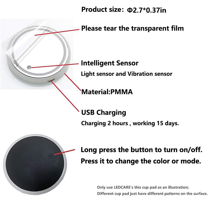 Smart Luminous Water Coaster LED Car Cup Holder Lights 7 Colors Changing USB Charging Mat Waterproof Cup Pad Interior Atmosphere Lamp Decoration Light for Oktoberfest Car Accessories 1pc 13