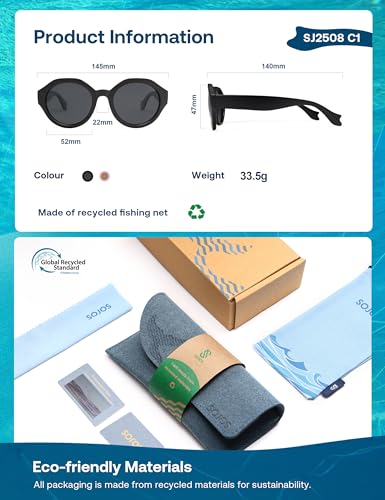 More information about SOJOS Ocean Collection Round Sunglasses Recycled Fishing Net Frame Eco-Friendly UV400 Polarized Lenses, Indian Ocean