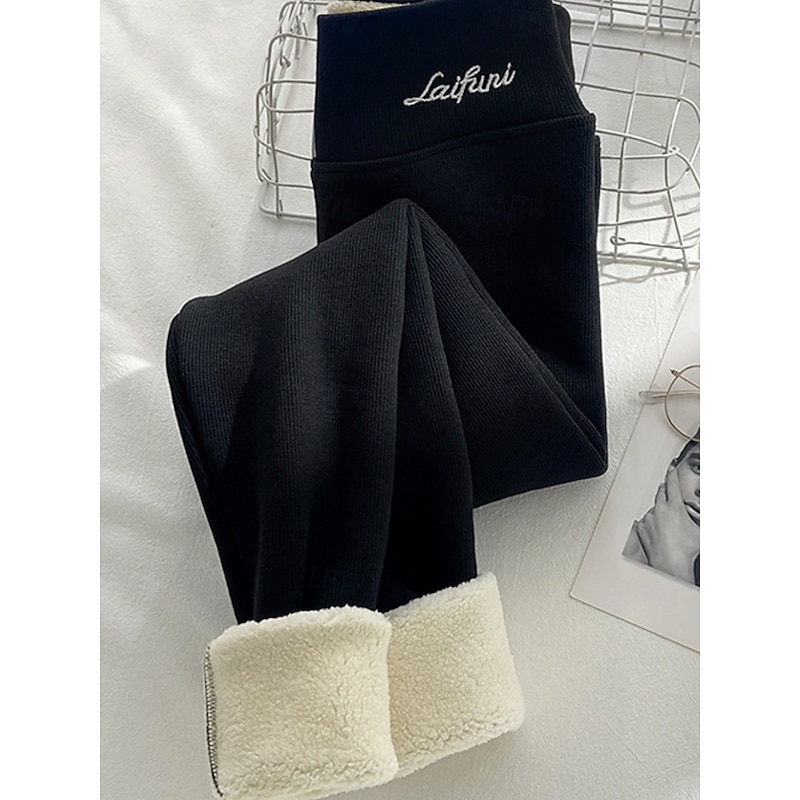 More information about Women's Fleece Pants Leggings Fashion Streetwear Casual Ankle-Length High Waist Plain Comfy Soft Comfortable Micro-elastic Outdoor Street Light Gray Dark-Gray Black Spring Fall Winter Regular Fit