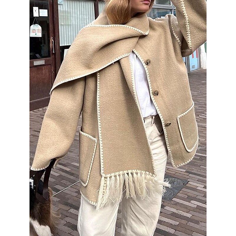 Women's Winter Coat Outdoor Street Daily Wear Fall Winter Regular Coat Regular Fit Thermal Warm Breathable Stylish Casual Jacket Long Sleeve Plain Tassel Fringe with Pockets Black White Khaki 14