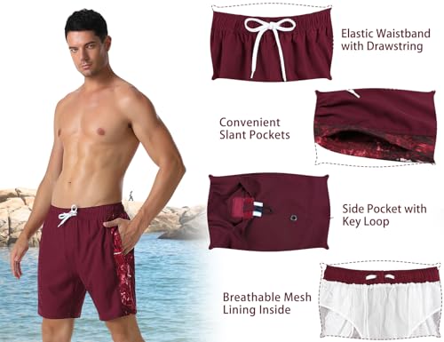 Men's Bathing Suits Summer Hawaii Swimming Trunks with Mesh Lining 6