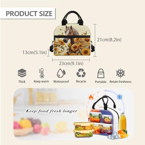 HOT ! Horse Backapck and Lunchbox Set Kids Backpack for School Girls 4th Grade Sunflower Preschool Elementary Middle School Bag Student Bookbag Cute School Supplies Set for Kids Teens 4 Pieces