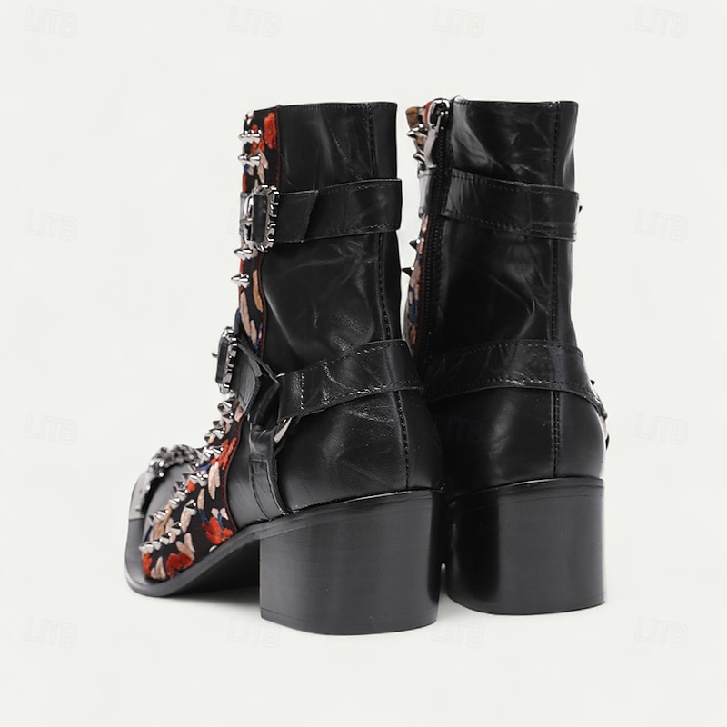 Men's Black Floral Embroidered Ankle Boots – Genuine Leather Western Cowboy Style with Buckle Straps for Parties, Stage Performances and Nightlife 11