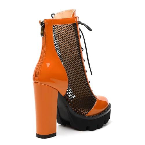 Womens Ankle Boots, Platform Chunky Heel Ankle Booties for Women, Sexy Mesh Sandal Booties with Back Zipper 4.5 5