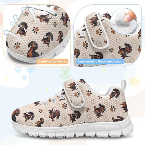 Little Kid Shoes for Boys & Girls Breathable Tennis Running Sneakers for Kids Cute Dachshund Pattern(White Sole) 6