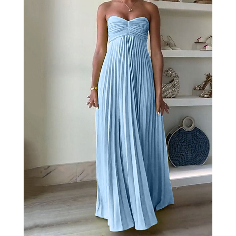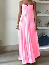 Why Choose Women's Long Dress Maxi Dress Casual Dress Swing Dress Fashion Outdoor Party Evening Party Regular Fit Plain Sleeveless Strapless Yellow Pink Blue Summer?
