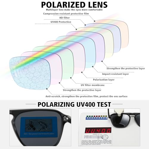 • High definition UV400 polarized lenses reduce sun glare and protect your eyes from dangerous UVA and UVB rays.
