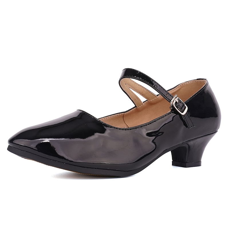 Highlights [Fabric] : Crafted from high-quality PU and patent leather, these women's latest dance shoes offer durability and a luxurious appeal, perfect for dance enthusiasts seeking both style and functionality. [Shape] : Featuring a classic closed-toe design, these shoes embody elegance and comfort, with a mid-height, thick heel that provides stability and support during long sessions of practice or performance. [Design Highlights] : The adjustable ankle strap with a delicate buckle not only ensures a secure fit but also adds a touch of sophistication, while the sleek patent leather finish enhances the shoe's luxurious look. [Occasions] : Ideal for practice, ballroom dance, and waltz, these shoes are suitable for both formal events and casual outings, seamlessly blending with various occasions requiring comfort and style. [Size Notice] : Available in a wide range of sizes from 34 to 42, these dance shoes are designed for adults and recommend selecting your standard size for the best fit. Perfect for everyday use. top-grade materials and excellent craftsmanship ensure long-lasting durability.