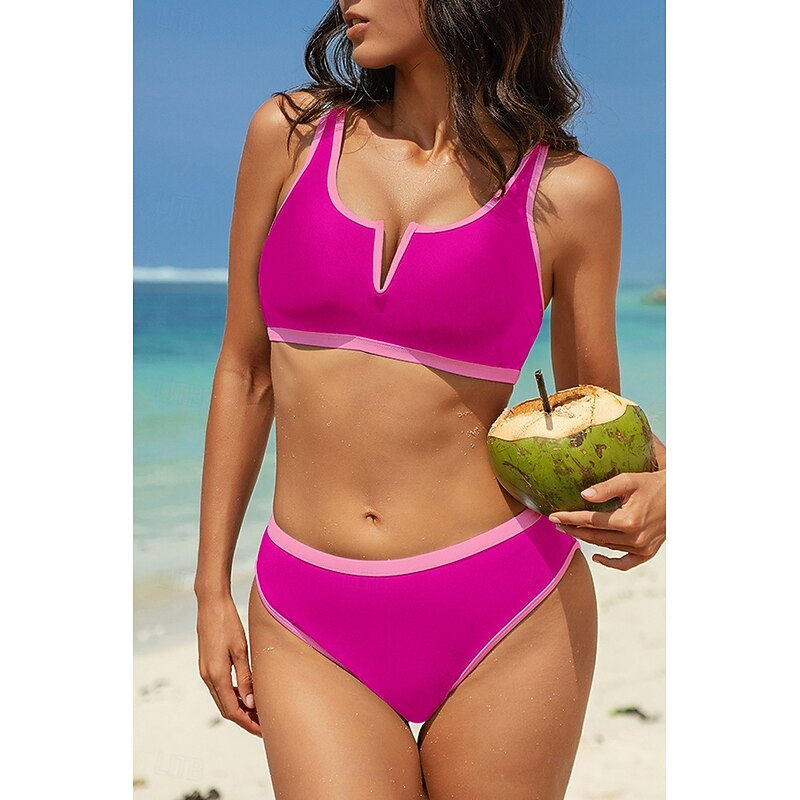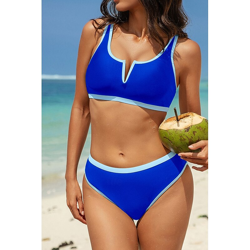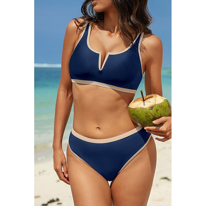 HOT ! Women's Swimwear Bikini 2 Piece Swimsuit Backless Patchwork Tropical Beach Wear Color Block V Neck Sleeveless Bathing Suits