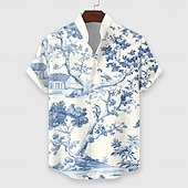 More information about Men's Floral Botanical Summer Hawaiian Shirt Aloha Shirt Short Sleeve Hawaiian Beach Vacation Summer Spring Stand Collar Buttons Blue