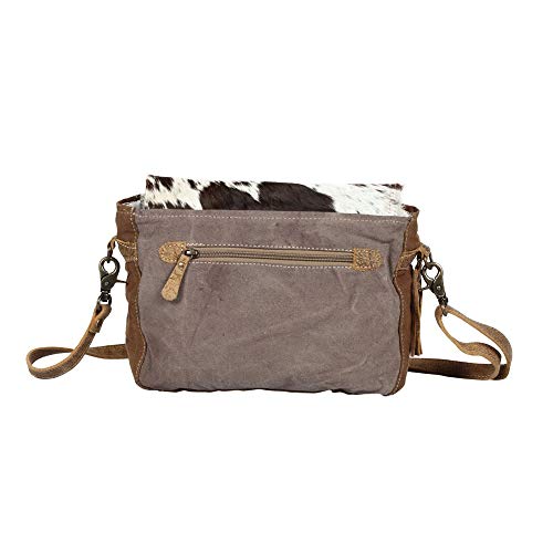Fabric type: LeatherClosure type: FlapLining: LeatherItem Display Dimensions: 11.5 x 3.5 x 8.5 inches{Canvas and Cowhide Purse} Stand out from the crowd with a classically earthy, two-toned canvas tote bag. With subtle vintage hints and a throwback vibe, you will love the look and feel of this messenger bag. Just right for a day out or as a classic carry-on for your trip{Perfect for Day or Weekend Trips} This flapover bag has a beautiful design to compliment your style. This Myra Bag’s flap over closure secures your items inside. Made for stylish, practical travelers like you featuring canvas and cowhide material and measuring 11.5” x 3.5” x 8.5”, and a 22” sturdy leather shoulder strap{Hand-Crafted Quality} We follow a specific process in the creation of our upcycled canvas purses and handbags which includes material selection, washing, cutting, assembling, sewing, and finishing before our leather-trimmed womens canvas bags pass several quality standard checks. We know you’ll love this quality messenger bag{Vintage Versatility} This cow-hide leather and rug material purse has a hairon flap masterfully sewed with durable and rugged wash canvas fabric to ensure long lasting durability. This designer messenger bag will fit many of your needs, making this ladies purse a perfect fit for work, travel, or everyday use. Your new favorite flapover bag for on the go just got even better{Handcrafted for Uniqueness} With a classic vintage purse look and a stylish take on western meets boho, this canvas and leather purse makes an excellent gift for her. Sure to bring admiring comments while also defining your own personal style Perfect for everyday use. High quality materials and excellent craftsmanship ensure long-lasting durability.