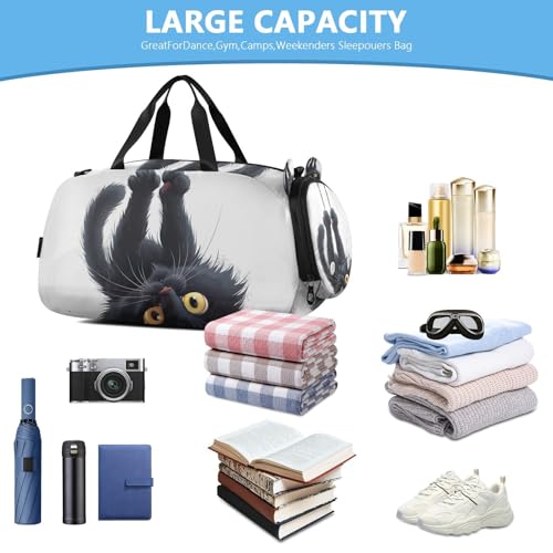 YETTASBIN Sport Travel Duffel Bag for Girls Boys, Black Cat Large Waterproof Weekender Overnight Bag, Detachable Shoulder Strap Gym Bag with Shoe Compartment & Wet Pocket 5