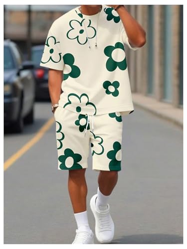 • Features: 2 Piece set, t shirt and shorts set for men, short sleeve, round neck, drop shoulder, floral print, drawstring waist, soft, trendy