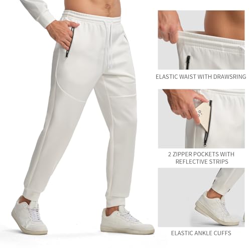 • Sweatpants with full elastic waistband, two zippered pockets, and ribbed ankle cuffs for a secure fit.