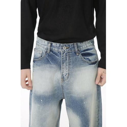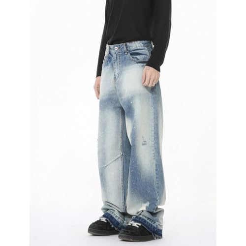 sought-after ! Mens Tie-Dye Wide Leg Denim Pants Spring Loose Fit Joggers Vintage Hip Hop Trousers