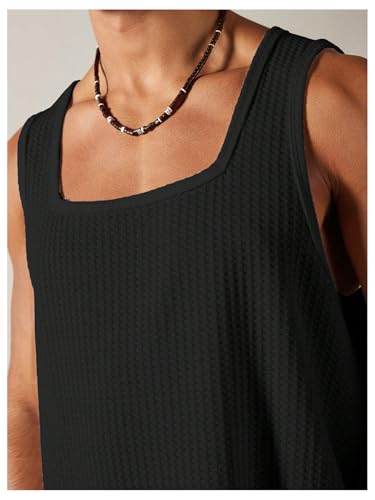 HOT ! Verdusa Men's Sleeveless Square Neck Waffle Basic Tank Tops Undershirt