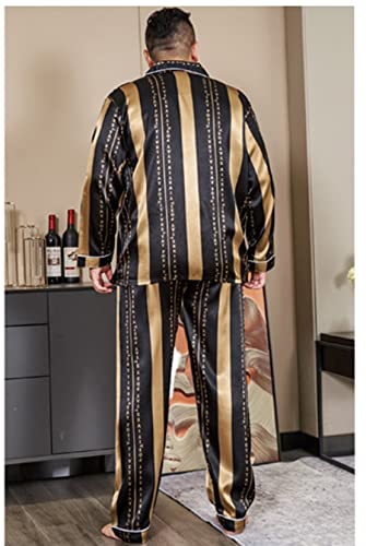 CYGE Men's Imitation Silk Satin Pajama Set 2-Piece Long Sleeve Plus Size Sleepwear Pjs Sets 3XL-5XL 3