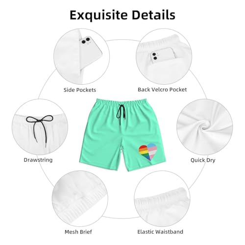 HOT ! LGBT Rainbow and Transgender Pride Flag Heart Mens Swim Trunks Quick Dry Board Shorts 7" - Hawaii Beach Swimwear