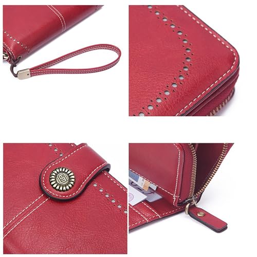 • Large Capacity : This women's wallet has 12 card slots and 1 ID window 2 cash compartments 1 hidden compartment 1 mobile phone slot and 1 zipper pocket. Lots of room to carry our phones cash coins cards and receipts ID cards driver's licenses or families' photos. It will be a good size to hold your cards & everything else you need to carry